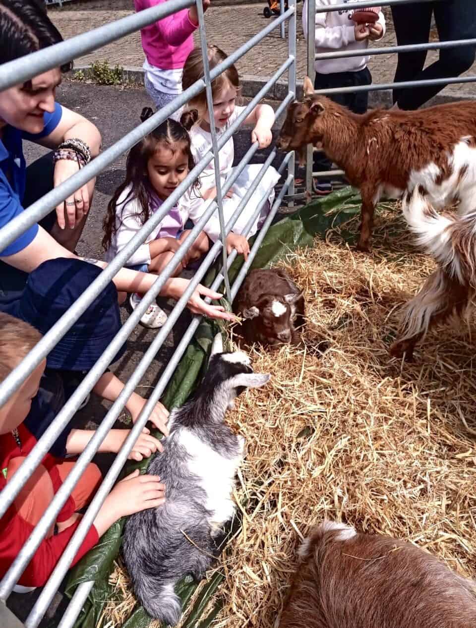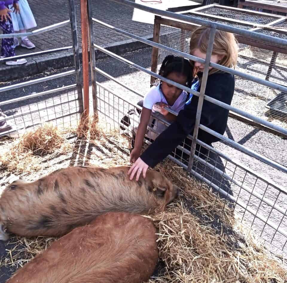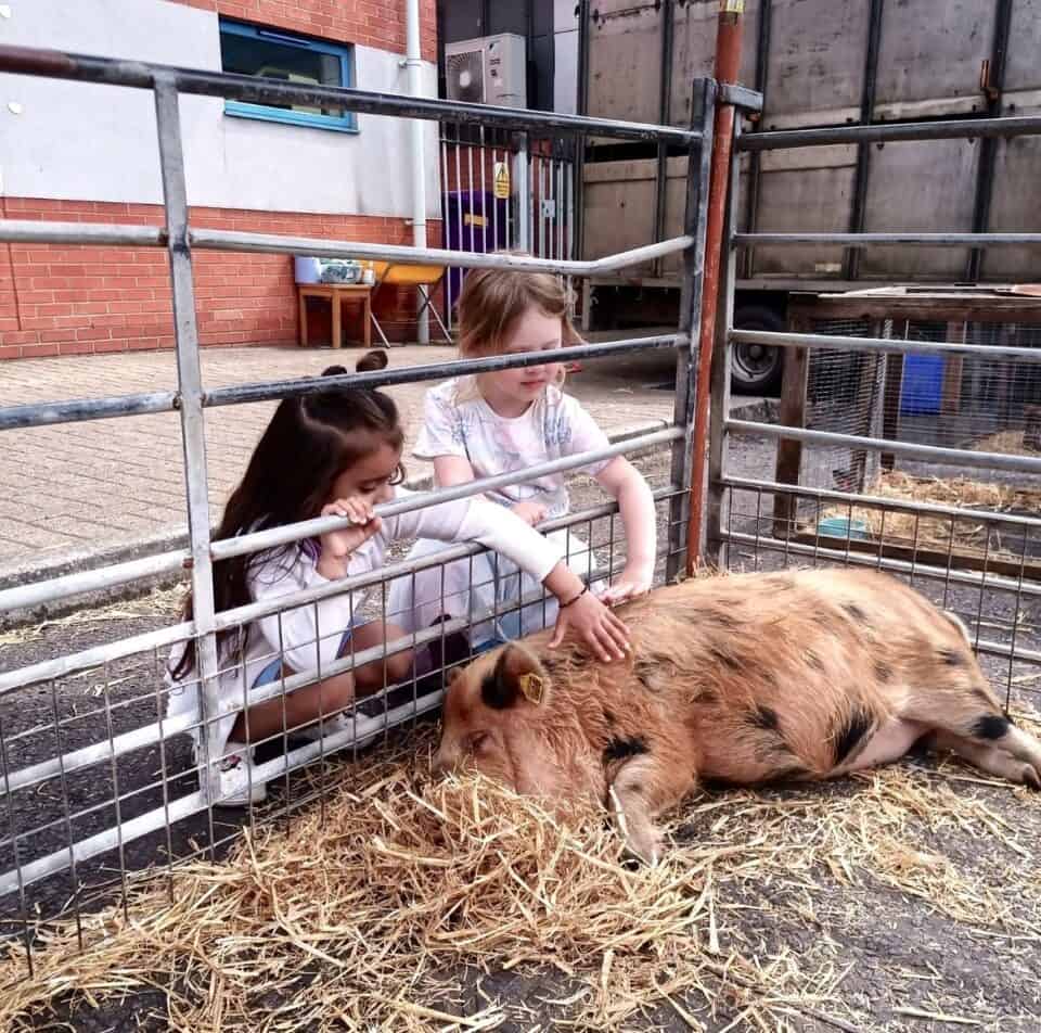 The goats quickly became a favourite, hopping around and making the children laugh. The donkeys, with their calm nature, were another highlight, patient and gentle as little hands reached out to give them a stroke. Even the pigs, a bit shy at first, won the children over with their muddy snouts and playful behaviour.